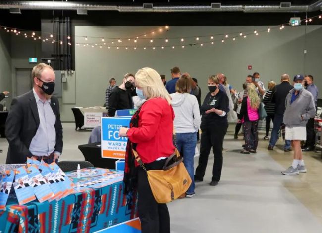 A meet-and-greet was held at The Social Spot and around 50 people came to ask questions of the candidates. Twelve of the 19 town council candidates and all three Rocky View Schools Ward 6 candidates were present and answering questions at socially distanced tables.